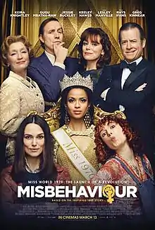 Misbehaviour is a 2020 British comedy-drama film directed by Philippa Lowthorpe, from a screenplay by Gaby Chiappe and Rebecca Frayn, from a story by Frayn. The film stars Keira Knightley, Gugu Mbatha-Raw, Jessie Buckley, Keeley Hawes, Phyllis Logan, Lesley Manville, Rhys Ifans and Greg Kinnear.