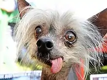 Miss Ellie (c. 1993 – June 1, 2010), a blind American Chinese Crested hairless dog, was the 2009 winner in the pedigree section of the World's Ugliest Dog Contest.[1] She appeared in shows at the Comedy Barn in Pigeon Forge, Tennessee, and was featured on the Animal Planet cable show Dogs 101. Dawn Goehring rescued Miss Ellie at seven years old. Miss Ellie died on June 1, 2010, at age 17.[1][2][3][4]
