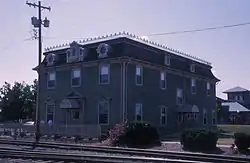 The Commercial Hotel, also known as the River Front Hotel, is a historic former hotel building at 123 North 1st Street in Fort Smith, Arkansas. The three story hotel is constructed of wood with a mansard roof, third-floor dormers, and wrought iron cresting, which are all characteristic of the Second Empire style. The hotel was built in 1898–99, when Fort Smith was a frontier town at the edge of Indian Territory (now Oklahoma). Following Oklahoma statehood in 1907, the hotel declined in significance and eventually closed.[2] The building now hosts "Miss Laura's Social Club", and serves as Fort Smith's visitors center.