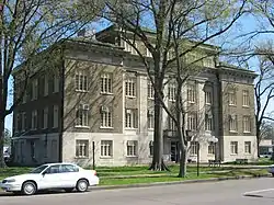 The Mississippi County Courthouse for the Chickasawba District is located at 200 West Walnut Street in Blytheville, Arkansas, one of Mississippi County's two seats (the other is Osceola). It is a 3+1⁄2-story brick-and-cut-sandstone structure, designed by the Pine Bluff firm of Selligman and Ellesvard, and built in 1919. It is a fine local example of Colonial Revival styling, with a recessed center entrance and a projecting modillioned cornice. The interior has had few alterations since its construction.[2]