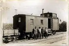 The minerals and supplies of the St. Joseph Lead Co., which operated one of the world-leading lead mines, were transported until 1880 on animal-drawn wagons between the mines and the St. Louis and Iron Mountain Railway.[2] In 1880 the St. Joseph Lead Company laid the track a 10 miles (16 km) long narrow gauge railroad[2] with a gauge of 3 feet (910 mm).[3] It was inaugurated on 18 January 1880 and became known as the St. Joseph & Des Loge Railway.[4] It was used to transport goods westerly from Bonne Terre to Summit, a point on the line of the St. Louis, Iron Mountain & Southern Railway Company, but the mine products of the St. Joseph Lead Company had still to be hauled for 18 miles (29 km) by ox-team from the mines to Bonne Terre. The narrow-gauge line was apparently jointly owned by the St. Joseph Lead Company and the Desloge Company. It was removed after the M.R. & B.T.'s property was placed in service.[1] The cost was split between both companies: The St. Joe paid 66% and the Desloge Company paid 33%. The St. Joe Lead Company acquired in 1887 the assets of the Desloge Lead Company, and tried to find a shorter route, to reduce the transportation cost.[2][5]