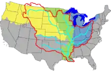 The United States Army Corps of Engineers Mississippi Valley Division (MVD) is responsible for the Corps water resources programs within 370,000-square-miles of the Mississippi River Valley, as well as the watershed portions of the Red River of the North that are within the United States. It excludes the entire watersheds of the Missouri River and Ohio River, and portions of the Arkansas River and the Red River of the South, but otherwise encompasses the entire Mississippi River from Lake Itasca, Minnesota, to the Gulf of Mexico. The division includes all or parts of 13 states: Arkansas, Illinois, Iowa, Kentucky, Louisiana, Michigan, Minnesota, Mississippi, Missouri, North Dakota, Tennessee, Wisconsin, and South Dakota.