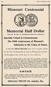 - "The Missouri Centennial Half Dollar a Popular Coin". The Numismatist: 484–485. October 1921.