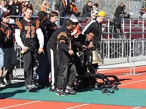 The institution of the Show-Me Bowl, a statewide championship tournament for high school football in Missouri, has complicated the playing of the Turkey Day Game, much as state championships elsewhere in the United States have done; both Kirkwood and Webster Groves have typically been contenders for the state title since approximately 2002. The first time this would be an issue was the 1979 contest, in which Webster Groves played the JV squad for most of the Turkey Day Game, still managing to win, en route to the state title.[1] In 1988, Webster Groves decided not to play the Turkey Day Game and chose to contest for the Show-Me Bowl instead. To allow the game to not be canceled because of such conflicts in future years, the two schools agreed to the "Turkey Day Agreement."[1] The agreement, which was based on the precedent set in the 1979 game, stipulates that in the event that either Kirkwood or Webster Groves advances to the Show-Me Bowl state championship game, the non-varsity members of the junior varsity and freshman squads play instead. The agreement was first invoked in 2002, and again in 2003 and 2006.[2]