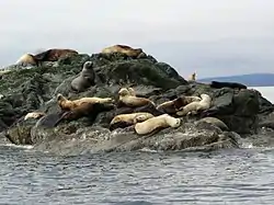Mitlenatch Island Nature Provincial Park is home to the largest seabird colony in the Strait of Georgia. Glaucous-winged gulls, pelagic cormorants, pigeon guillemots, rhinoceros auklets and black oystercatchers also return to Mitlenatch each spring to breed. All sedentary marine life, including abalones, scallops and sea cucumbers are fully protected within this zone. Some of the largest garter snakes in BC reside here. These snakes are frequently encountered along trails and in beach and tide pool areas, where they feed on small fish such as sculpins and blennies. This park is a favourite haul out for harbour seals, northern and California sea lions. The sea lions are generally present from late autumn to mid-May. River otters, killer whales and harbour porpoises are often sighted offshore.