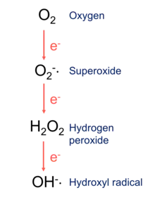 ROS are highly reactive, oxygen-containing chemical species, which include superoxide, hydrogen peroxide and hydroxyl radical. If the complexes of the ETC do not function properly, electrons can leak and react with water, forming ROS. Normally leakage is low and ROS is kept at physiological levels, fulfilling roles in signaling and homeostasis. In fact, their presence at low levels lead to increased life span, by activating transcription factors and metabolic pathways involved in longevity. At increased levels ROS cause oxidative damage by oxidizing macromolecules, such as lipids, proteins and DNA. This oxidative damage to macromolecules is thought to be the cause of ageing. Mitochondrial DNA is especially susceptible to oxidative damage, due to its proximity to the site of production of these species.[4] Damaging of mitochondrial DNA causes mutations, leading to production of ETC complexes, which don’t function properly, increasing ROS production, increasing oxidative damage to macromolecules.