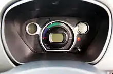 Regeneration and power consumption can be monitored by the driver with an analogue instrument surrounding the digital speedometer on the dashboard/control panel which shows both instantaneous power consumed (needle moving to the right of its resting neutral position) and regeneration (needle moving to the left).[20]: 5–35