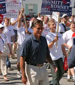 Mitt Romney surrounded by supporters during the September 2007 Milford Labor Day parade in Milford, New Hampshire.