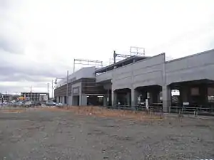 The station has two platforms serving two tracks. Both platforms are elevated.