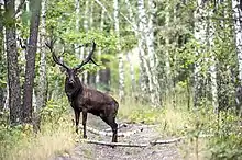 The forest is mostly pine trees. The large wild area provides a habitat to many animals. There are many larger mammals in Mizhrichynskiy RLP such as red fox, moose, wolf, lynx, deer, roe deer, wild boar and others. There are 241 bird species, including 145 breeding species. White-tailed eagle, short-toed eagle, lesser spotted eagle, black kite, black stork, crane, black woodpecker, white-backed woodpecker and a lot of other rare birds breed here. It also provides important habitats for a variety of fish[1] and insects.[2] There are 65 rare plant species and 74 rare animal species in Mizhrichynskiy regional landscape park. There are two Important Bird Areas within Mizhrichynskyi Regional Landscape Park.