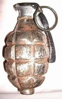 The Mk 1 grenade (sometimes spelled Mk I) is a fragmentation hand grenade used by American forces during World War I. According to its designers, it was to be the "simplest", yet most "fool-proof", grenade ever made.[1] However, some major problems appeared when the grenade was used in the field. It was retired from service before the war ended, replaced in 1918 with the improved Mk 2 grenade used through World War II.