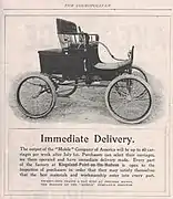 Advertising for the Mobile Company was taken out in most major magazines and as Brisben Walker was the publisher of Cosmopolitan Magazine, the Mobile Company of America featured prominently in it. Mobile's new factory was expected to produce 20 steam carriages weekly. By the fall of 1901, production was averaging 5 steam carriages a week.[4][3] Locomobile built approximately 5,000 steam runabouts over three years. Mobile, being slower to market, built an estimated 600. In early 1903, the Mobile Company of America stopped production. Later in 1903, the equipped automobile plant at Kingsland Point was leased to Maxwell-Briscoe.[2][4]