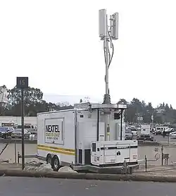 Cells on wheels (COW), or site on wheels,[1] are telecom infrastructures, placed on trailer approved for road use, towed by heavy goods vehicles for loads of up to 3500 kg. These mobile radio base stations guarantee full operation in just one day and in restricted spaces. COWs provide fully functional service, via vehicles such as trailers, vans and trucks, to areas affected by natural disaster or areas with large user volume, such as major events. The backhaul to the network can be via terrestrial microwave, communication satellite, or existing wired infrastructure.