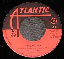 "Moby Dick" is an instrumental drum solo by English rock band Led Zeppelin, featured on the band's 1969 album Led Zeppelin II. Named after the 1851 novel of the same name by Herman Melville, it was also known by the alternative titles "Pat's Delight" (early 1968–1969 version with completely different guitar riff) and "Over the Top" (with "Out on the Tiles" intro section and original closing reprise) during various points of the band's career. The track is often regarded as one of the greatest drum solos of all time.[4][5][6]