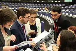 Participants are divided into Members of Parliament (MEPs), Ministers in the Council of the European Union, Interpreters, Journalists and Lobbyists. MEPs and Ministers discuss the chosen Directive and Regulation proposing amendments according to their interests, aiming at reaching consensus between the two Chambers. This is achieved by following the same Ordinary Legislative Procedure that real MEPs adopt in the exact setting and location of the European Parliament. Meanwhile, Lobbyists try to push forward their agenda and influence the final decision on the two pieces of legislation, while Interpreters ensure accurate and engaging simultaneous interpretation of the whole process in around 10 languages. Everything is carefully documented both visually and verbally by Journalists. Model European Union Strasbourg has its own newspaper, which not only covers the legal procedure, but also provides interviews with stakeholders and background information. The journalist team of each edition chooses the name for the newspaper and the whole team contributes to its daily issue. Additionally, a press conference in which journalists can ask questions to MEPs and Ministers takes place on a daily basis. Not only are these press conferences helpful for journalists, but they also make it easier for all stakeholders to keep up with the development of the negotiations in both Chambers.