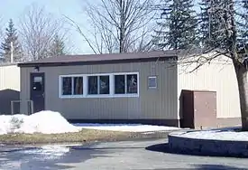 A portable classroom (also known as a demountable or relocatable classroom, portables, bungalows), is a type of portable building installed at a school to temporarily and quickly provide additional classroom space where there is a shortage of capacity.[1] They are designed, so they may be removed once the capacity situation abates, whether by a permanent addition to the school, another school being opened in the area, or a reduction in student population.[1] Such buildings would be installed much like a mobile home, with utilities often being attached to a main building to provide light and heat for the room. Portable classrooms may also be used if permanent classrooms are uninhabitable, such as after a fire or during a major refurbishment.