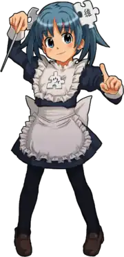 Moe anthropomorphism (Japanese: 萌え擬人化, Hepburn: moe gijinka) is a form of anthropomorphism in anime and manga where moe qualities are given to non-human beings (such as animals, plants, supernatural entities and fantastical creatures), objects, concepts, or phenomena.[2] In addition to moe features, moe anthropomorphs are also characterized by their accessories, which serve to emphasize their original forms before anthropomorphosis. The characters here, usually in a kind of cosplay, are drawn to represent an inanimate object or popular consumer product. Part of the humor of this personification comes from the personality ascribed to the character (often satirical) and the sheer arbitrariness of characterizing a variety of machines, objects, and even physical places as cute.