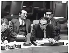 Mohamed Kamel Amr (Arabic: محمد کامل عمرو, born 1 December 1942)[1] is an Egyptian politician and diplomat who served as Egypt's minister of foreign affairs between 2011 and 2013. He resigned from office on 30 June 2013.[2]