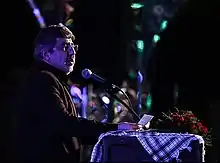 ![]() Mahmmadreza Taheri, performing Maddahi at a memorial for martyrs of Mahalle Kan, Tehran | |