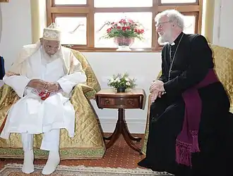Mohammed Burhanuddin (6 March 1915 – 17 January 2014) was the 52nd Dā'ī al-Mutlaq of Dawoodi Bohras.[3] He led the community for 49 years in a period of social, economic, and educational prosperity;[4][5] strengthened and re-institutionalized the fundamental core of the community's faith; revived its culture, tradition, and heritage. In successfully achieving coexistence of traditional Islamic values and modern Western practices within the community, Burhanuddin completed the work his predecessor Taher Saifuddin had started.[6] Burhanuddin was presented the highest national civilian honors of the states of Egypt and Jordan[3][4] recognising his revivalism and restoration efforts.[7] He was known in Arab countries as Azamat us-Sultan (lit. 'the Great Sovereign'). Owing to extensive travels for community reach-out,[2] he was the first Dā'ī al-Mutlaq to visit Europe, Australia, and America.[8]