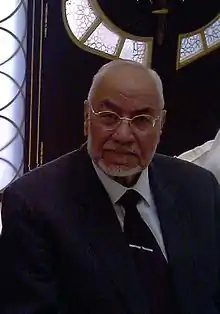 Mohammed Mahdi Akef (Arabic: محمد مهدي عاكف; July 12, 1928 – September 22, 2017) was the head of the Muslim Brotherhood, an Egypt-based Islamic political movement, from 2004 until 2010. He assumed the post, that of "general guide" (Arabic: المرشد العام) (frequently translated as "chairman") upon the death of his predecessor, Ma'mun al-Hudaybi. Akef was arrested on 4 July 2013.[2] On 14 July 2013 Egypt's new prosecutor general Hisham Barakat ordered his assets to be frozen.[3]