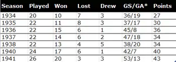 One of the club officials, CA Aziz concentrated on creating a strong team through modern strategies and was one of the only Indians to first realise the importance of playing in boots.[18][14] Aziz recruited Mohun Bagan rejects like Kaleh Khan and Hafiz Rahid in 1931, and also players from different parts of India were gradually brought in, often in the name of religion.[24] Players like Masum, Mahiuddin and Rahmat came from Bangalore, while Jumma Khan arrived from North-West Frontier Province, thus forming a truly cosmopolitan team.[25] The whole team had a Muslim core, with no players outside the community. This helped Aziz to create unmatched unity in his squad which showed on and off the field. In 1933, Mohammedan qualified for the premier division of CFL for the first time in its history by topping the second division. Under the captaincy of Khurshid Anwar, Mohammedan became the first native club to capture the CFL title in 1934, in their very first year in top division.[26] In March 1935, he was unanimously elected as the General Secretary of the club for the second time and in October that year he organised a successful tour to Rangoon, Mandalay, Maymyo, Colombo, Galle, Kandy, Madras, Bangalore and Mysore for the football team.[23] That year, the captain's armband was handed over to the young and charismatic Abbas Mirza and later in the summer, Mohammedan recruited goalkeeper Osman Jan from Crescent Club in Delhi. With Osman Jan under the bar, Taj Mohammad and Jumma Khan, were part of a strong and formidable back-line.[24] The trio of Rahim, Hafiz Rashid and Rahmat led the goalscoring duties and, Rashid and Rahim would go on to become the league's top scorer in 1935 with 16 goals and 1938 with 18 goals respectively.[25] Along with new and young recruits every year, two defining names remained constant in the team – Syed Abdus Samad, who joined in 1933, and Mohammed Salim, who returned for a second spell in 1934.[27][28][29][30][31] In 1936, Mohammedan became the first all-Indian team since 1911 to win IFA Shield by defeating Calcutta CFC in the final by 2–1 with goals from Rashid Jr. and Rahim.[32] With their third league win that year, they also became the first Indian club to win the League-Shield "double".[25] During this time, Salim took trials at Celtic FC, and was selected for the team but after playing two friendlies in Scottish Football Alliance, he returned to Mohammedan being homesick, even though being offered contracts from Celtic as well as from clubs in Germany.[33] Thus, he became the first Indian to play for a foreign club.[34] From 1934 to 1938, Mohammedan won the league for record five consecutive times and missed out the title only once in 1939 from 1934 to 1941, when they declined to play in protest against IFA.[35][36] By this time Mohammedan became the undisputed Invincibles of CFL and football in India was no more only about the British against the Indians but also the Hindus (via Mohun Bagan and East Bengal Club) versus the Muslims.[20]