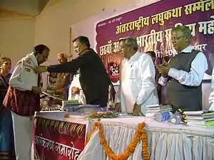 Mohandas Namisray deliberative creation story writing for receiving the honor conferred by Mahesh Tiwari.
