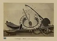 This musical art is thought to be predated Angkorian period and probably dated back to as early as the 9th century.[2] Mohaori became more popular and further developed in the Post-Angkorian era until the present days.[3] The songs and lyrics of Mohaori music normally depict the beauty and admiration of nature, and the confession of love. The Music played by this Khmer ensemble is gentle and fluid which is suitable for an entertainment in Cambodian social and traditional events. Nowadays, Mohaori is still a popular Khmer traditional music played in various occasions and festivities.[2]