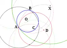 - Construct point D' ≠ D as the other intersection of circles A(D) and C(D).