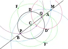 - Construct point M as an intersection of circles F(D' ) and F' (D). (M lies on AB.)