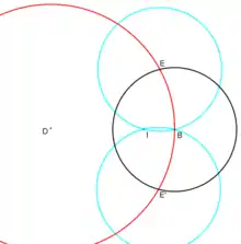 - Construct two new circles E(B) and E' (B) (in light blue).