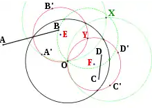 - Construct point F' as the intersection of circles C(DD' ) and D' (C). (F' is the fourth vertex of parallelogram CDD'F'.)