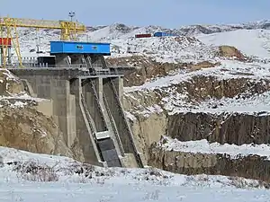 The Moinak Hydro Power Plant (Мойнақ СЭС-і, Moınaq SES-i) is a hydro power plant on the Sharyn River south of Almaty in Almaty Province of Kazakhstan. It was commissioned on December 9, 2011,[1] and became fully operational in 2013.[2] It has 2 individual turbines with a nominal output of around 150 MW which deliver up to 300 MW of power[3] and generate 1.027 billion kilowatt-hours of electricity per year. It is funded by Kazakhstan's and China's National Development Bank and is currently worth around US$300 million.