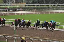 Moira made her first start against male horses on August 21 in the Queen's Plate, the first leg of the Canadian Triple Crown. She faced a competitive field, headed by Rondure (Marine Stakes) and Sir for Sure (Plate Trial).[11] The betting favourite for much of the day, Moira ultimately went off at odds of 9–5, the second choice in the betting to Rondure, who received late support. All other horses in the field went off at double-digit odds. Attard kept the filly in the saddling enclosure before the race, trying to keep her from getting over-excited. "I could see she was getting a little edgy just because so many people were around," said Attard. "She knew today was a different day."[12]