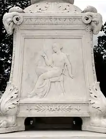 In the Republic of Plato, the three Moirai sing in unison with the music of the Seirenes. Lachesis sings the things that were, Clotho the things that are, and Atropos the things that are to be.[38] Pindar in his Hymn to the Fates, holds them in high honour. He calls them to send their sisters, the Hours Eunomia ("lawfulness"), Dike ("right"), and Eirene ("peace"), to stop the internal civil strife.[39]