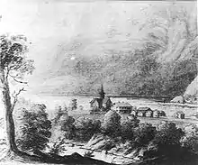 Around the year 1342, the old church was closed and a new stave church was built across the lake at Moland next to the old rectory. In 1595, the Bishop Jens Nilssøn was visiting Fyresdal. He wrote "Moland's church, a wooden church, is right next to the vicarage." He exhorted the church to improve and maintain the church and vicarage (perhaps they were not so well cared for at that time). He wrote nothing more about the church. In 1665, the 14th-century stave church was torn down and replaced with a new church. The new building was a wooden cruciform church which was described by procurator Jonas Lund as "the most beautiful in Upper Telemark". It was decorated with oil paintings of the Oldenburg kings of Denmark-Norway from Christian I through Frederik V.[4][5][6]