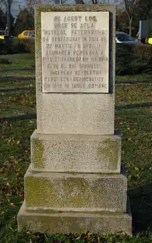 Moldavian revolutionaries arrived in Iaşi after violence had broken out in Wallachia. On 8 April 1848, a few great boyars opposed to Sturdza, younger liberal boyars, and representatives of the middle class and other urban classes, perhaps a thousand in all, met in the Hotel Petersburg to decide on a course of action. This meeting was the culmination of several weeks of small private gatherings and several public manifestos denouncing despotism, all occasioned by news of the events in Paris, Vienna and Berlin. Moderates prevailed, persuading the gathering to support a petition to the prince setting forth all their grievances and proposing suitable reforms. They also agreed to dissolve their assembly and all other associations right after delivering the petition. Such caution seems principally to have been inspired by fear that the urban lower classes and peasantry would push the protest movement to extremes.[5][6]