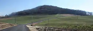 Mole Hill is a rounded hill composed of basalt, a volcanic rock, formed during the Eocene epoch of the Paleogene period. It is the eroded remnant of what was an active volcano approximately 47 million years ago, making it one of the youngest volcanoes on the east coast of North America. It is located west of Harrisonburg, Virginia, in Rockingham County.[1]