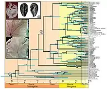 Phylogenies are the evolutionary history of an organism, also known as phylogeography. A phylogenetic tree is a tree that shows evolutionary relationships between different species based on similarities/differences among genetic or physical traits. Community ecology is based on knowledge of evolutionary relationships among coexisting species.[57] Phylogenies embrace aspects of both time (evolutionary relationships) and space (geographic distribution).[58] Typically phylogeny trees include tips, which represent groups of descendent species, and nodes, which represent the common ancestors of those descendants. If two descendants split from the same node, they are called sister groups. They also may include an outgroup, a species outside of the group of interest.[59] The trees depict clades, which is a group of organisms that include an ancestor and all descendants of that ancestor. The maximum parsimony tree is the simplest tree that has the minimum number of steps possible.