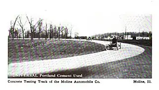 In 1909 the Model S became the Model M with a 4-cylinder 35-hp engine and would be offered into 1914. The model M as a touring car was introduced at $1,500, equivalent to $45,239 in 2021.[1] The larger 40-hp Model K participated in the 1909 and 1910 Glidden Tours. The Moline team in the 1909 Glidden Tour received the Hower (Chicago) trophy.[7][1] In 1910 R & V made improvements in their automobile plant with heated concrete floors and a new concrete paved testing track.[8]