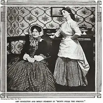 In October 1911 Pearson appeared at Collier's Comedy Theatre as the leading lady in the Scottish play, Bunty Pulls The Strings, written by Graham Moffat. Pearson read for the role of 'Bunty' in Moffat's presence at the Haymarket Theatre prior to being engaged to portray the character in New York City. In the remote Scottish village where the play has its setting, a typical woman wears a hoop skirt. The attire was both fashionable and a part of enforced decorum for women in 1800. Many theatergoers saw Bunty which ran for an entire season. The Grand Opera House, York staged the play before its final run in Pittsburgh.