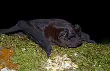 Bonda mastiff bats are nocturnal and insectivorous, with moths forming a significant part of their diet. They commonly roost during the day in caves and hollow tree trunks, but have often been found roosting in buildings.[2][3] Female bats give birth to a single young, with pregnant individuals being noted in both March and August.[2] At least some females may enter oestrus more than once in a given year.[4]