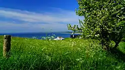 ![]() Kalø Cove seen from Trehøje in the Mols Hills with Knebel Vig (foreground), Skødshoved (to the left) | |