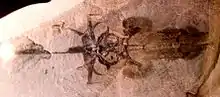 A decapod, type member of the family Aegeridae. This genus is the most abundant local crustacean, and was a shrimp-like creature that was probably necrophagous.[13] |