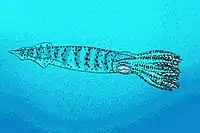 A coleoid, member of the family Ostenoteuthidae. A unique group of coeloids, only found at this location.[27] |