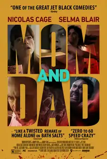 Mom and Dad is a 2017 comedy horror film written and directed by Brian Taylor. Starring Nicolas Cage and Selma Blair, the film premiered at the 2017 Toronto International Film Festival, and was theatrically released on January 19, 2018 by Momentum Pictures. A joint British and American production, the film underperformed at the box office but received generally positive reviews from critics.