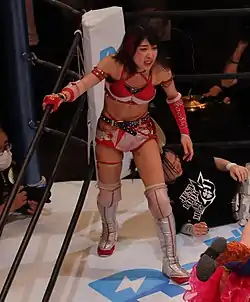 Momo Kohgo (向後桃, Kohgo Momo, born April 6, 1985) is a Japanese professional wrestler currently working for the Japanese promotion World Wonder Ring Stardom. She is also known for her time in Ice Ribbon and Actwres girl'Z.[5]