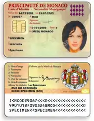 ![]() The front and reverse of a Monégasque identity card | |