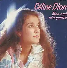 "Mon ami m'a quittée" (meaning "My Friend Left Me") is the first single from Celine Dion's album Les chemins de ma maison. It was released on 26 September 1983 in Quebec, Canada and in November 1983 in France.[1] The song was very successful in Quebec. On 8 October 1983 it entered the singles chart and became number 1 for nine weeks. It spent twenty four weeks on the chart in total. Dion received also 2 Félix Awards the next year. "Mon ami m'a quittée" was released later as a single in France to promote Dion's first album in that country, Du soleil au cœur. A music video was made in 1984, for the Sur les chemins de ma maison TV special. Dion recorded also a German version of this song called "Mon ami, geh nicht fort". It was included as B-side on "Was bedeute ich dir" single, released in Germany in 1984.