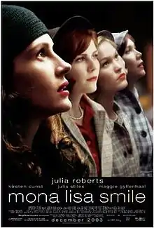 Mona Lisa Smile is a 2003 American drama film produced by Revolution Studios and Columbia Pictures in association with Red Om Films Productions, directed by Mike Newell, written by Lawrence Konner and Mark Rosenthal, and starring Julia Roberts, Kirsten Dunst, Julia Stiles, and Maggie Gyllenhaal. The title is a reference to the Mona Lisa, the famous painting by Leonardo da Vinci, and to the song of the same name, originally performed by Nat King Cole, which was covered by Seal for the movie. Julia Roberts received a record $25 million for her performance, the highest ever earned by an actress at that time.[3]